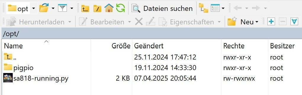Bitte das Verzeichnis opt doppelklicken, damit die Datei sa818-running.py zu sehen ist.